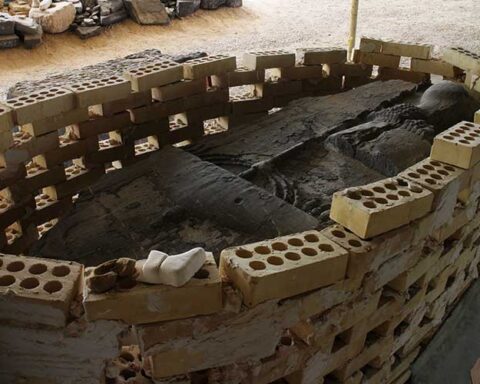 ادامهاز نخلستانها که میگذرید، تابلوهای رنگپریده راه را نشان میدهند. اینجا تموکن است. درِ فلزی زنگزدهای در انتهای جادهی خاکی است که روی تابلویی بالای آن نوشته: «کاخ هخامنشی بردک سیاه». اینجا حفاظ فلزی هم دارد اما تکهپاره. پایهستونهای کاخ زیر همین تکهپارههاست. میگویند در فصل بارندگی ترکهایش، راه خوبی…