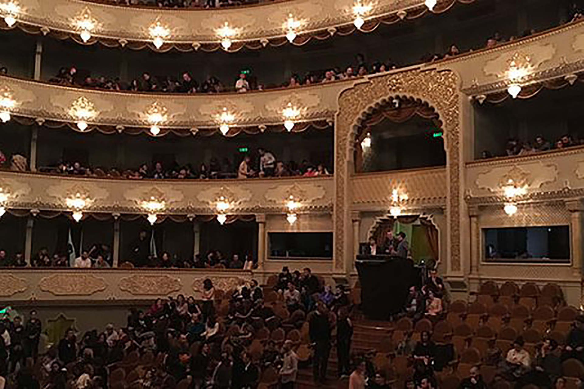 وقت تنفس که می‌رسد گشتی در تالار می‌زنیم. خانه‌ی اپرای دولتی گرجستان ۱۶۵ سال قدمت دارد. در ۱۸۵۱ زیر نظر معمار ایتالیایی، جیوانی سودیه‌ری، ساخته شده است با حدود هشتصد نفر گنجایش. معماری داخلی‌اش را طراح‌های پاریسی انجام داده‌اند و در همان سالِ تأسیس روزنامه‌ی پاریسی «ایلوستراسیون» درباره‌اش نوشته: «بدون‌شک یکی از برازنده‌ترین، زیباترین و شگفت‌انگیزترین عمارت‌های تئاتری که بشر تابه‌حال ساخته.» الکساندر دوما هم، که در ۱۸۵۸ گذرش به تفلیس افتاده، یک بخش کامل از سفرنامه‌اش را به این تالار اختصاص داده است: «… وارد تالاری شدیم که به‌نظر می‌رسید کاخ پریان باشد، نه برای دکوراسیون باشکوهش، بلکه برای اینکه با ظریف‌ترین سلیقه ساخته شده بود … احتمال دارد که خیلی پول خرج این تالار نشده باشد، اما بدون تردید می‌گویم که در تمام عمرم تالاری به این دلپذیری ندیده‌ام.»