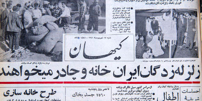 پس از زلزله‌ی بویین‌زهرای قزوین به‌سبب اینکه بیشتر مناطق آسیب‌دیده روستایی بود و با شهرها ارتباطی وجود نداشت، تا مدتی کسی از عمق و وسعت فاجعه خبر نشد. مرا که به سفر قزوین فرستاند گفتند: «مثل اینکه زلزله شده، برو ببین خبری هست یا نه.» ساعت حدود شش صبح بود. وقتی وسط خاک جاده‌ها به روستاها رسیدیم، از شدت تأثر همه از حال رفتیم. در بویین‌زهرا ساعت ده صبح من چند حلقه فیلم را با یک کرایه‌ی دربستی به تهران فرستادم. عکس‌ها به‌موقع چاپ شد و دوباره روزنامه‌ی ما جلو افتاد. آن روز من تا غروب، روستا به روستا عکس گرفتم. عکس‌ها را می‌گرفتم و به تهران می‌فرستادم. اولین عکس‌های زلزله‌ی قزوین را من دادم. از فردا کم‌کم خبرنگاران عکاس، از تهران و از کشورهای دیگر، به منطقه سرازیر شدند.