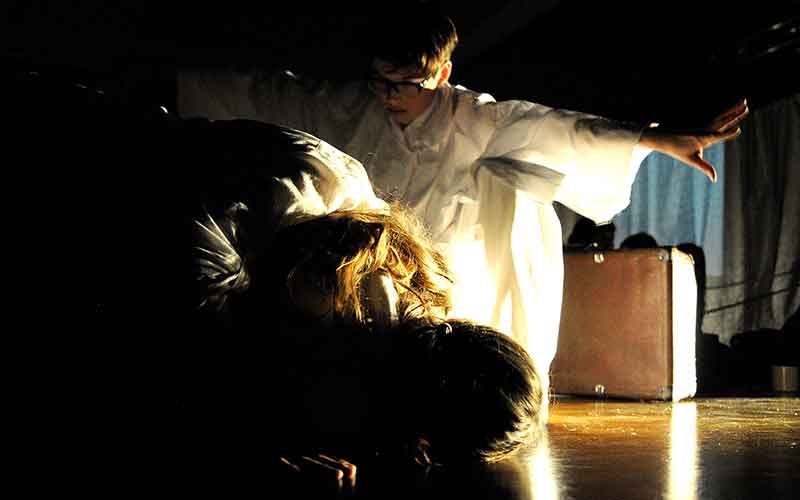 در «صدای آهستهی برف» همهی تصاویر منطقی واقعگرا دارند جز یکی: گرگی با بدن انسان یا شاید هم انسانی با بدن گرگ. او دو بار در نمایش ظاهر میشود. یک بار به کمک زائو میآید و یک بار هم دستآخر کودک مرده را در آغوش میگیرد و زیر بارش برف خیره به دیگران مینگرد. حضور او همانقدر که در نمایش غیرطبیعی مینماید، در رویا طبیعی است. گرگ تنها تصویری است که کارگردان از رویای ناخودآگاه نمایش برگزیده و به صحنه آورده. گرگ مهربان است و این عجیب نیست، همانطور که در رویاها، گاهی آدمها رفتاری جز آنچه انتظار میرود از خود بروز میدهند. در مدتی که گرگ بیحرکت ایستاده، لحظهای پلک میزنم، گرگ اندکی روی کودک خم میشود و آهسته چیزی در گوش او نجوا میکند. شاید گرگ تاریخ دارد برای کودک شعری از پاسترناک میخواند: «کودکی که در فصل زمستان میآید/ سرما را تا آخر عمر/ در استخوان خواهد داشت.»