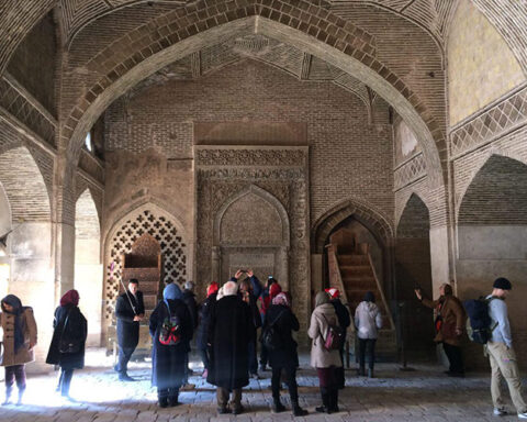 ادامهکاشیهای فیروزهای و کهربایی در نور خورشید بهمنماه میدرخشند، یکی از راهنمایان گردشگری چینی، زیر گنبد فیروزهای، آوازی در وصف صلح به انگلیسی میخواند. او برای نخستین بار همراه با ۳۲۰ راهنمای گردشگری، از ۴۵ کشور دنیا، به ایران آمده است. او در این سفر قزوین، زنجان، همدان، تهران، شیراز…