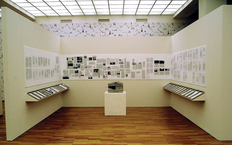 بهمثابه تعریفی که او از اندیشهی رادیکال دارد، از هر فضایی برای به چالش کشیدن همان فضا بهره میگیرد. در ۲۰۰۵ به دعوت کلیسای جامع شهر برلین، که حالا دیگر کلیسا نیست و موزهی دائمی تاریخ پارلمانتاریسم در آلمان است، اثری را بهنمایش میگذارد با عنوان «دستههای مارش». او در توصیف فضای حاکم بر مجموعهای که در آن کارش را نمایش میدهد میگوید: «در یک چنین نمایشگاهی رسمی، موضعی حقبهجانب شکل میگیرد که با نوعی اغراق میخواهد برخورد مسؤولانهی خود با تاریخ را به رخ بکشد، که طبیعتاً یک بخش آن هم متعلق به دوران نازیها است و نمایانگر نقش مجلس در به قدرت رسیدن آنهاست. اینجا بازنمایی گاهی تبدیل به ژست میشود؛ مجموعهای که نامش «راهها، کجراههها، بیراههها» است. برای بهچالش کشیدن چنین ژستی «دستههای مارش» را بهنمایش گذاشتم. دستههای مارش نظامی همیشه نمایانگر قدرت رسمی حکومت در لحظات پرطمطراق افتخار ملی هستند. اما من انیمیشنی از فیگورهای تکرارشونده در فرماسیونهای متفاوتی از آزار رساندن و آزار دیدن ساختم که مثل ساعت دایرهوار میچرخیدند و در تکرار بیوقفهی خود انگار گذر زمان را نفی میکردند. انیمیشن را از بالا توی جعبهی بزرگی پروجکت کردم که وقتی از دور به آن نگاه میکردی، تنها نوری را میدیدی که از درون جعبه ساطع میشد. وقتی مخاطب به نزدیک جعبهی نورانی میرفت و درون آن را نگاه میکرد آن تصاویر متحرک را میدید. این نگاه از بالا به درون آن سطح نورانی با تداعی چشمه و گفتوگوی درونی با تصویر خود بر سطح آب همراه میشد و به تصاویر شکنجه دوخته میشد؛ چرخهی بستهی خشونت که عین کالیدوسکوپ خود را بازتولید میکرد و نقشهای موزونی میساخت از حرکاتی بین رقص و خشونت؛ درست مثل رژههای نظامی، آن هم در مکانی که بیش از هر چیز علاقمند به تطهیر خود است.»