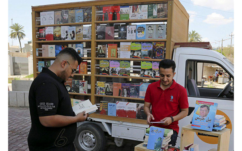کتابفروشی سیار با قفسههایی سوار بر پشت کامیونت یکی از آخرین تلاشهای علی الموسوی بیستوپنجساله است. او از ۲۰۱۵ در فیسبوک صفحهی «کتاببازان عراقی» را راه انداخت. علی و دوستانش میگویند بغداد روزگاری پایتخت ادبی جهان اسلام بود، اما حالا بهجای شعرهایی که شاعران برای رودهای عراق سرودند، کشورشان به سرزمین بمبها و حملههای انتحاری شهرت پیدا کرده. علی در دو سال اخیر، با هدف روحیه دادن به جوانان بغداد و احیای کتابخوانی، چندین کلوب و مسابقهی کتابخوانی راه انداخته. او دانشآموختهی ادبیات انگلیسی است و کتابخوانی حرفهای. میگوید: «مدتها بود دلم میخواست راهی برای ارتباط با آدمهای شبیه خودم پیدا کنم، آدمهایی که در بغداد کتاب میخوانند.»