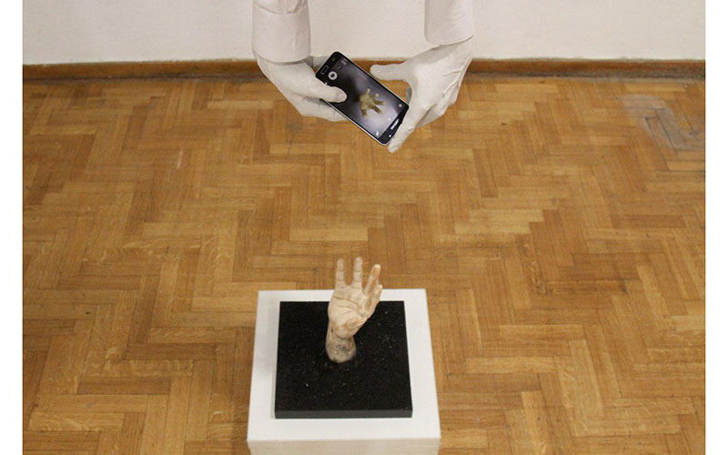 چیدمان نمایشگاه خوب است. آثار بیش از پنجاه هنرمند در آن به نمایش گذاشته شده، اما کارها با فاصلهی مناسب و بدون آنکه نظم فضا را برهم زده باشند، در تمام سه طبقهی فرهنگسرای نیاوران چیده شدهاند. در طبقهی اول مجسمههایی از علیخان عبدالهی از مجموعههای «زن دستبهدعا» و «شیرها» از جنس پاپیهماشه قرار دارد. عبدالهی متولد بامیان اما ساکن ایران است که بهصورت خودآموز هنر را آموخته. البته با نگاهی به دیگر آثار نمایشگاه میتوان متوجه شد که حضور عکس در میان مدیاهای دیگر پررنگتر است؛ بهویژه عکسهای اجتماعی که برخی از آنها جنبهی مستند هم دارند. برخی از عکسها روی کودکان افغانستانی متمرکز شدهاند، همچون عکسهای سیاه و سفید مرتضی هراتی از مجموعهی «رودخانه و کودکان» که در سال گذشته گرفته شده و کودکان افغانستانی را در حال آببازی نشان میدهد. یا عکسهای سیاه و سفید احمد ناصربیات که ساکن فنلاند است با مجموعهی «نگاه» که آن هم در سال ۹۵ گرفته شده و کودکان را در خیابان یا مغازه نشان میدهد.